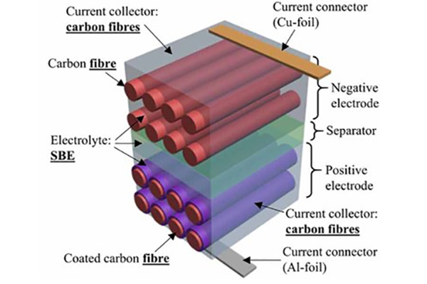 查爾姆斯理工大學結構電池的開發經過多年的研究,包括之前涉及某些類型碳纖維的發現。根據同一所大學的一項研究,引入碳纖維結構電池可以將輕型電動汽車的行駛里程提高 70%。此外,據說結構電池較低的能量密度使其比標準電池更安全,特別是因為它們也不含有任何揮發性物質。