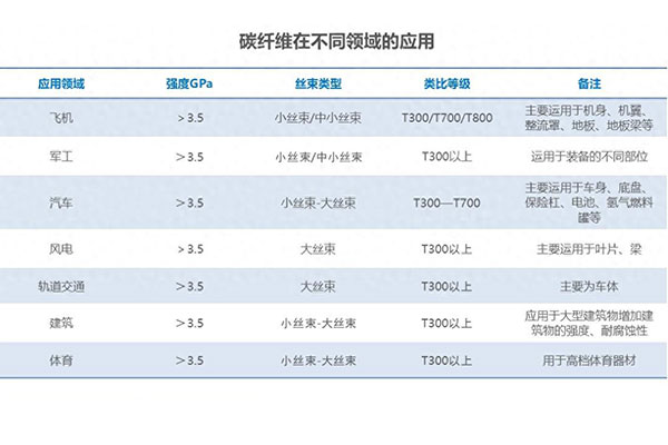 碳纖維被認為是高性能纖維的杰出代表,以高比強度和高比模量而被認可,同時還具有密度低、耐高溫、耐腐蝕、抗疲勞等一系列的優(yōu)勢,因此發(fā)展迅猛成為替代金屬材料的首選材料。現(xiàn)如今的碳纖維已經(jīng)廣泛的應(yīng)用到航空航天、軌道交通、國防軍事、醫(yī)療器械以及海洋工程、風(fēng)力發(fā)電、體育休閑等多領(lǐng)域中,是國民經(jīng)濟和現(xiàn)代化國防的重點物資材料。